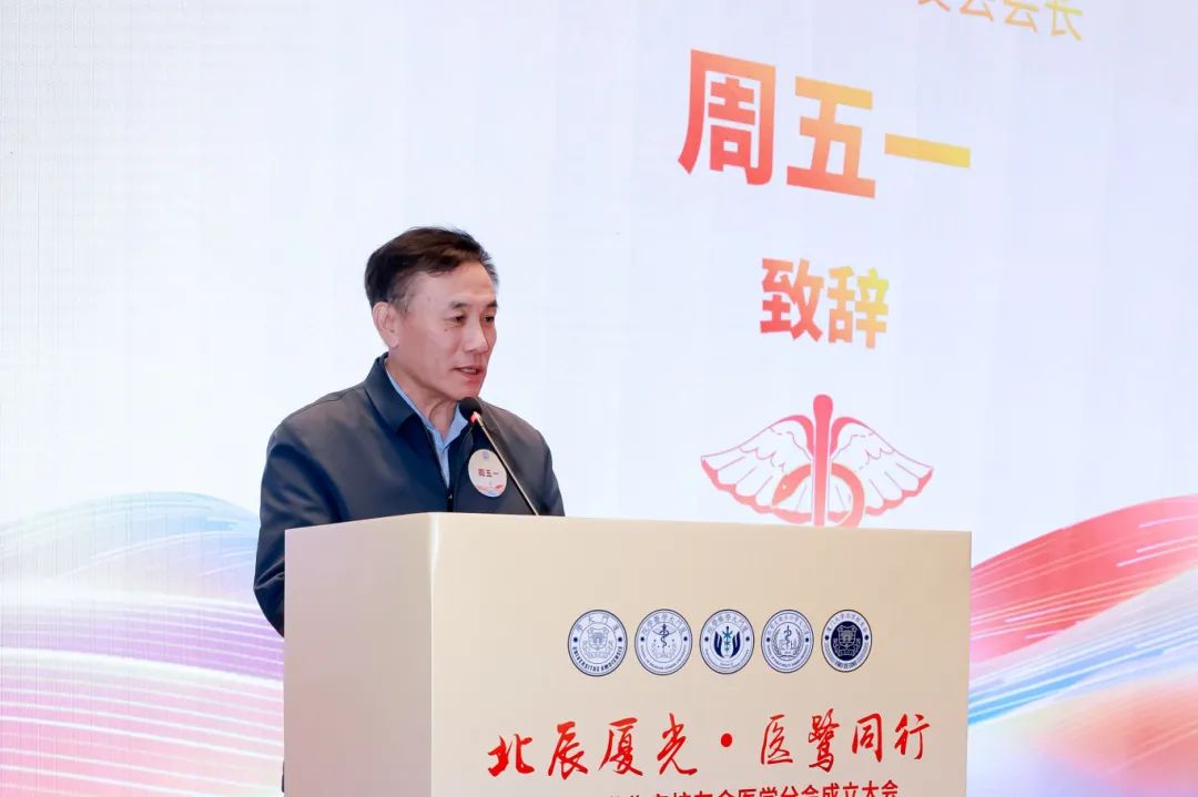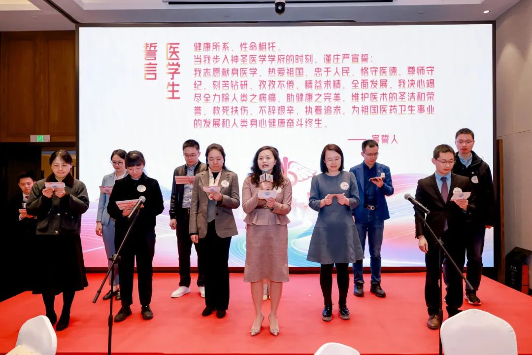在“联结”篇章中,陈作观校友汇报医学分会筹备情况及章程内容。全海、周五一、李峰、陈锡彬分别致辞,对分会的成立表示热烈祝贺,并寄语校友们“以专业为舟、以情怀为帆”,搭建南北医学交流的桥梁。