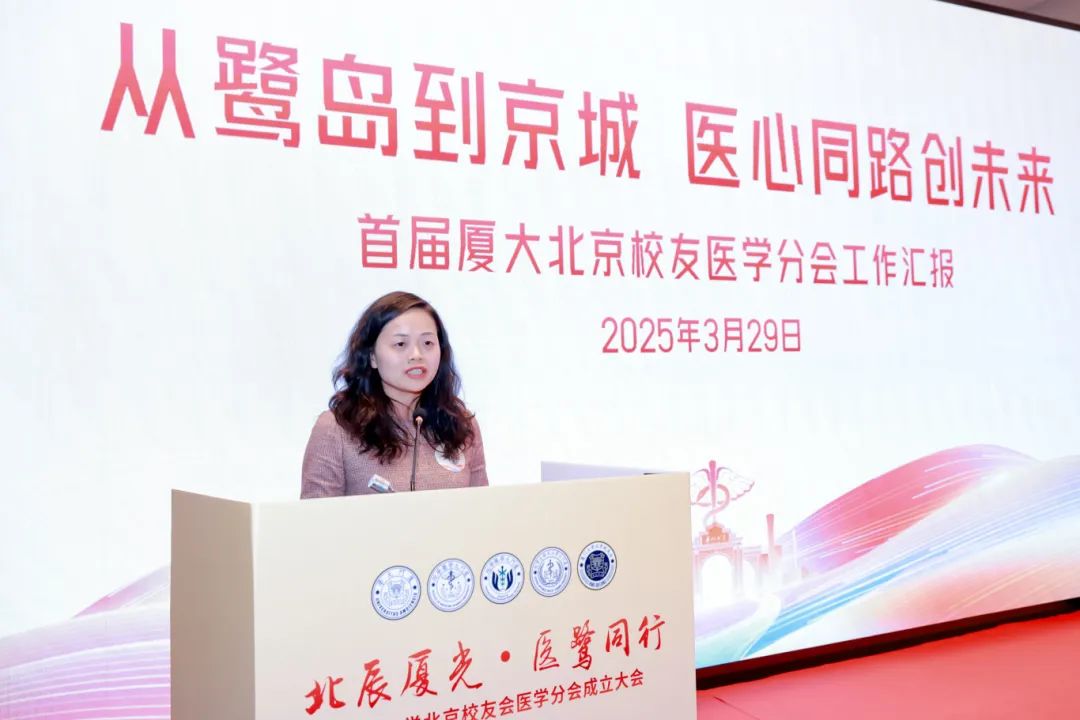 成立仪式后,周五一为首届医学分会会长罗小云颁发聘书。罗小云发表题为《从鹭岛到京城,医心同路创未来》就职演讲。她表示,分会将致力于凝聚校友力量,推动学术交流、资源共享与社会服务,助力“南强医学”品牌走向全国。