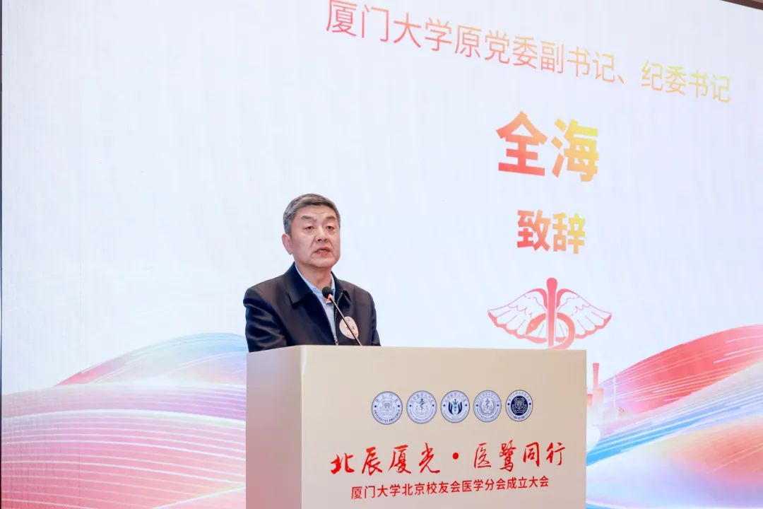 3月29日,厦门大学北京校友会医学分会暨厦门大学医学院北京校友会成立大会在北京厦门大厦颐豪酒店圆满举行。厦门大学党委原副书记、原纪委书记全海,厦门大学北京校友会会长周五一,厦门市人民政府驻京办党组书记、主任陈锡彬,厦门市人民政府驻京办党组成员、二级巡视员郑永泓,厦门大学北京校友会副会长兼秘书长陈剑峰,厦门市人民政府驻京办党组成员、副主任骆磊,厦门大学医管办主任、医学院党委书记李峰,后勤集团党委书记马龙,对外联络办主任陈运动,医学院党委副书记王坤钟,公共卫生学院党委副书记庄曦,药学院党委副书记杨明伟等领导嘉宾及近百位在京校友出席活动,共叙校友情谊,共谋医学发展,见证这一历史性时刻。
