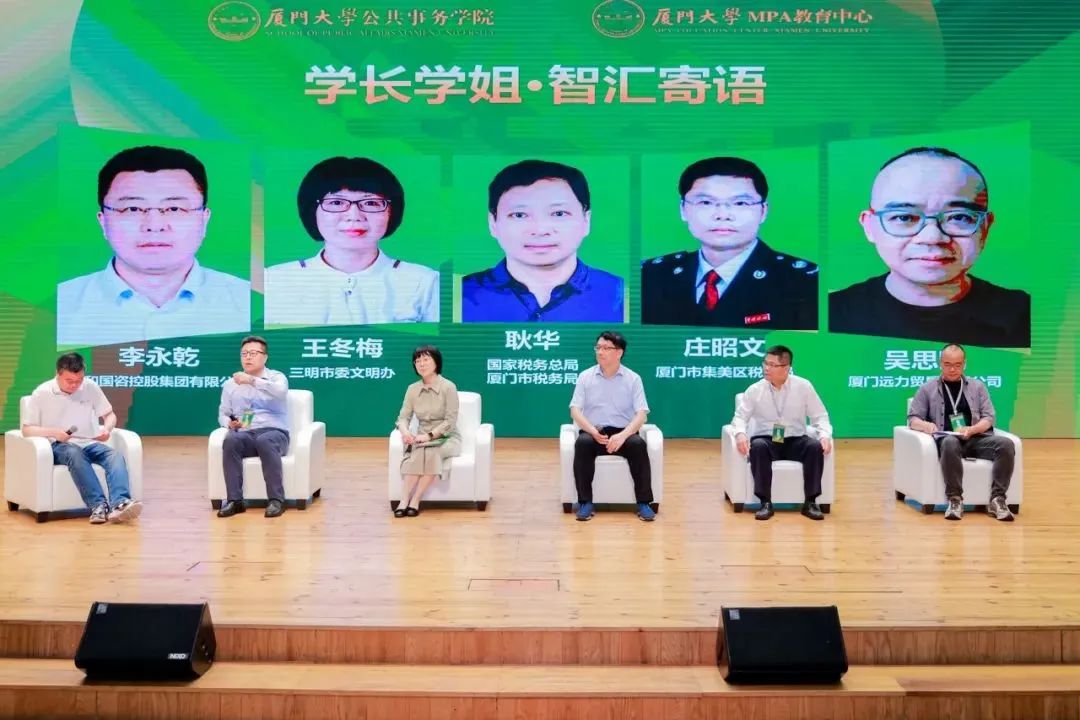 在“学长学姐·智汇寄语”环节,公共事务学院副院长罗思东邀请2001级MPA校友、三明市委文明办王冬梅,2001级MPA校友、厦门远力贸易有限公司总经理吴思凯,2002级MPA校友 、天和国咨控股集团有限公司总经理李永乾,2003级MPA校友、国家税务总局厦门市税务局耿华,2003级MPA校友、厦门市集美区税务局庄昭文五位围绕“回母校的心情、对厦大MPA高质量发展的建议、对学弟学妹们寄语”进行了分享。他们饱含深情地回忆了昔日求学的经历,借机对母校、母院和老师表达真挚的感谢和美好的祝愿,并真情寄语后辈不忘初心、学以致用。