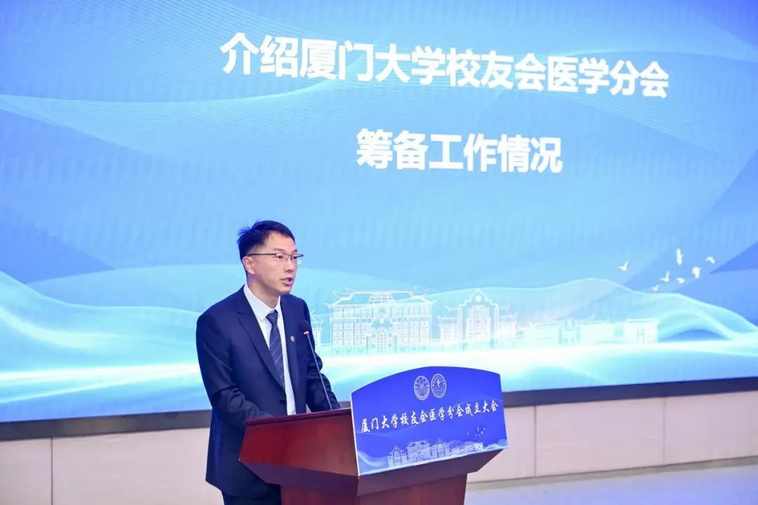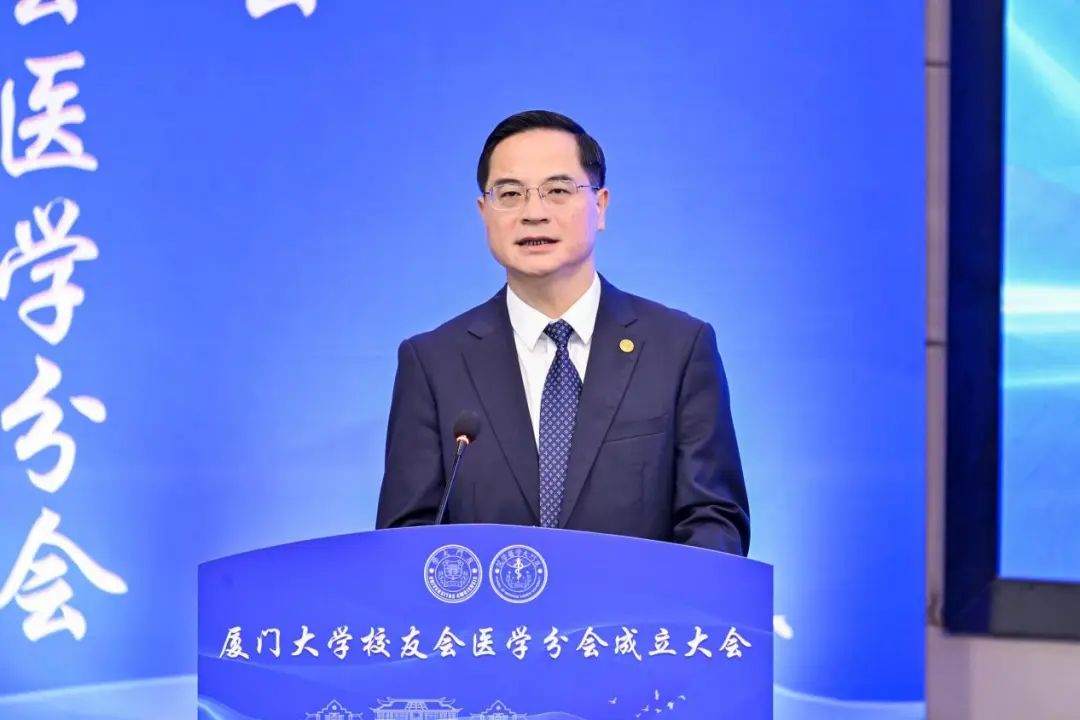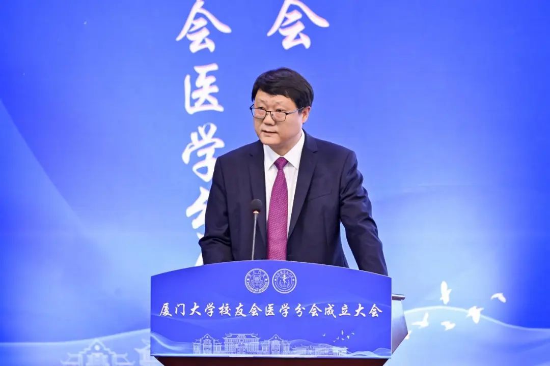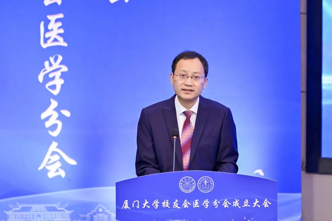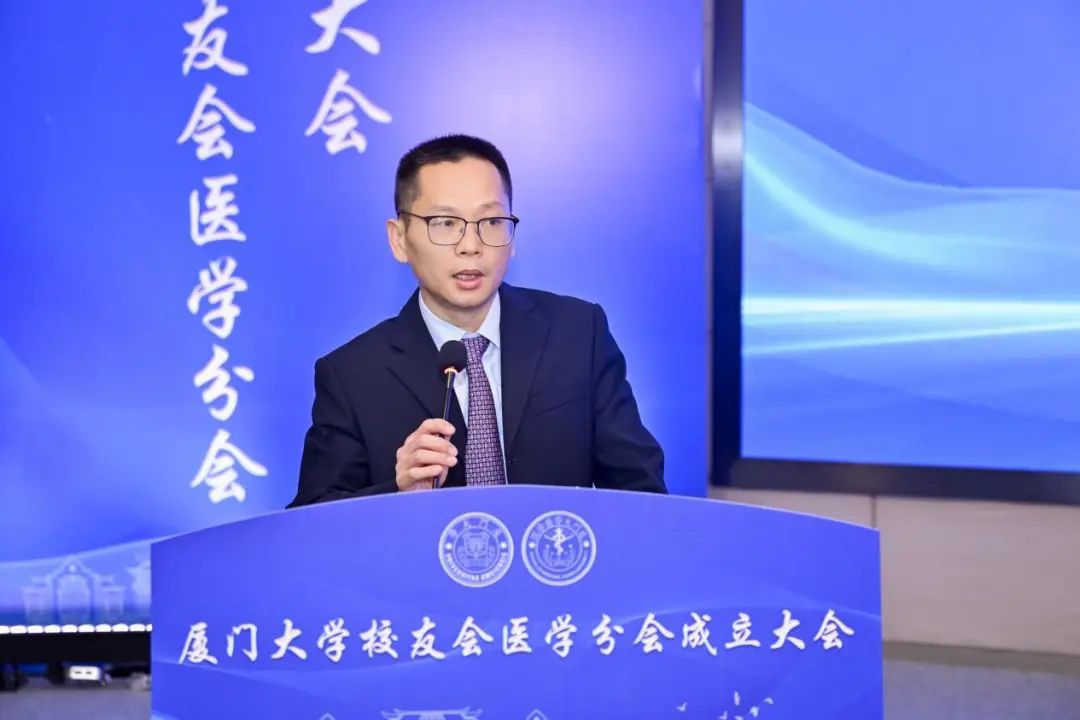 温暖聚首,医路同心。医学院党委书记李峰在讲话中指出,校友是学院的品牌和宝贵财富,学院历来高度重视校友工作,在联络校友、关心校友等方面做了积极探索,校友工作取得了初步成效。他表示,厦门大学校友会医学分会今天正式成立,为我们共同愿景成为现实奠定了良好开端。未来,学院将和医学分会携手奋进,持续推动校友工作发展,努力把校友会建设成为凝聚校友、共创未来的坚实纽带,殷切期盼广大校友积极响应和热情参与,为学院的发展添砖加瓦,共同助力学院朝着建设世界知名高水平研究型医学院的目标奋进。