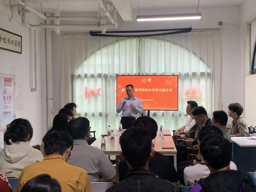 会后,学生志愿者陪同与会嘉宾和校友参观了医学院建设发展图片展。当日下午,学院邀请郑坤木、全君柱、徐昊、陈作观、蔡小鑫、陈新等6位校友导师在“一站式”学生社区举办校友导师“面对面”主题沙龙,与在校学生重温成长故事,共话医者仁心。