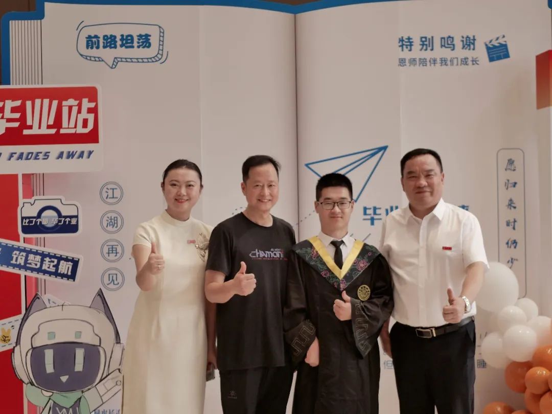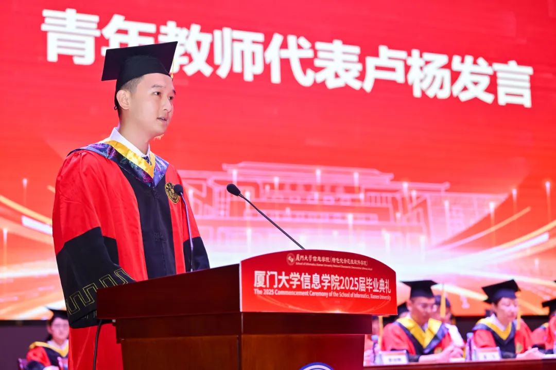 青年教师代表卢杨发言,回顾了与同学们朝夕相处、“双向奔赴”的过往。他说,老师最大的幸福,就是教书育人,与学生共同成长。世上没有放之四海而皆准的“最好”选择,只有“最适合”自己的选择。希望毕业生们胸怀家国,以“破壁前行”的勇气和坚韧不拔的毅力,深耕广袤沃土,探索未知疆界,把聪明才智和一腔热情,聚焦于突破国家急需的关键核心技术上,积极投身到解决社会亟待破解的重大现实问题的实践上。
