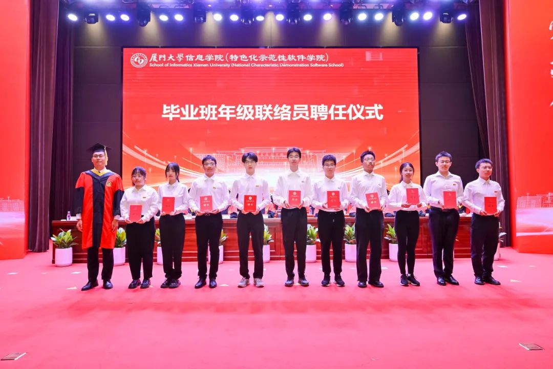 信息学院始终关注、关心、支持每一位校友。每年都聘任一批毕业生年级联络员,通过与校友紧密联系,共同推动学校学院建设,服务校友发展。典礼上,举行了2025届毕业生年级联络员聘任仪式。龚树丰宣读学院聘任决议,聘任41名毕业生为年级联络员。向乔代表学院向联络员代表颁发聘书。