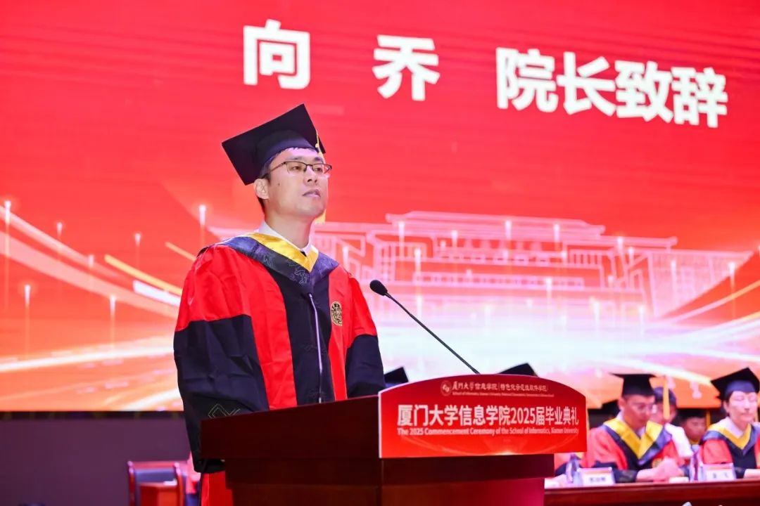 向乔表示,面对复杂多变的环境、激烈的竞争压力、技术迭代的焦虑,同学们可能会感到人生“信号”受到干扰,甚至遭遇生活“带宽”瓶颈。希望大家以积极乐观的心态去面对,保存好Deeplearning(深度学习)Deepmind(深度思考)Deepseek(深度求索)这三行人生代码,带着厦大“自强不息”的精神指针,朝着 “止于至善” 的人生目标,坚定前行,绽放出属于自己的光芒。