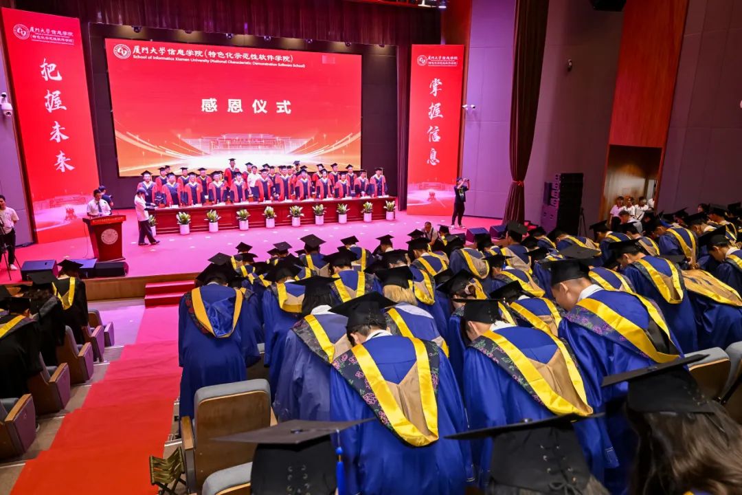 “强信班”学员代表上台,带领全体毕业生齐唱《厦门大学校歌》。