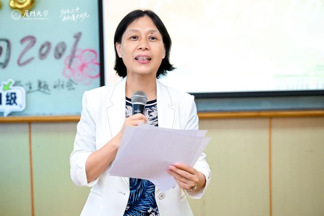 “纷开二十·我的生命交响”主题班会伊始,厦门大学管理学院企管系副主任何燕珍老师代表学院和企管系致以最热烈的欢迎词。她不仅带来了母校对游子们的深切挂念,更向大家详细介绍了工商管理学科二十年来的蓬勃发展与辉煌成就,让在场的每一位同学都为母校的进步感到由衷的骄傲与自豪。