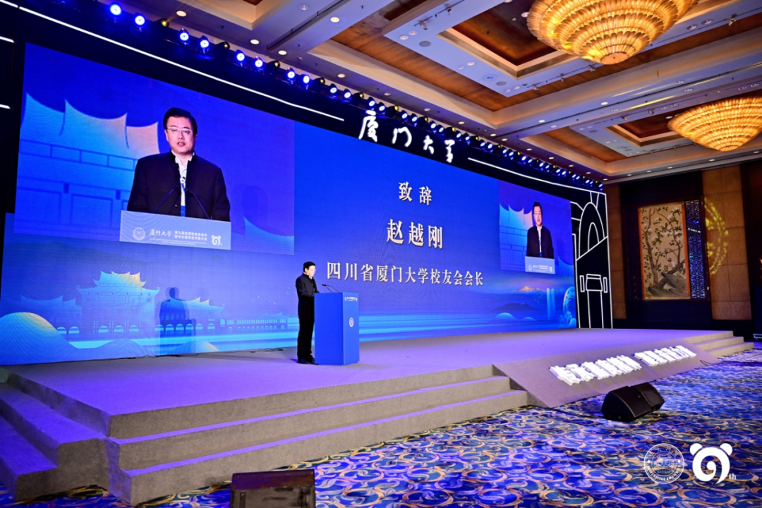 四川省厦门大学校友会会长赵越刚热烈欢迎嘉宾、校友共赴盛会,并介绍四川校友会发展历程和本届大会筹备情况,感谢母校、各地校友会和社会各界对本次大会的关心与支持。他表示,四川省厦门大学校友会将继承和发扬嘉庚精神,凝聚厦大人智慧、优势和影响力,为母校教育事业发展、为四川社会经济建设作贡献,续写厦门大学与四川的校地新情缘。