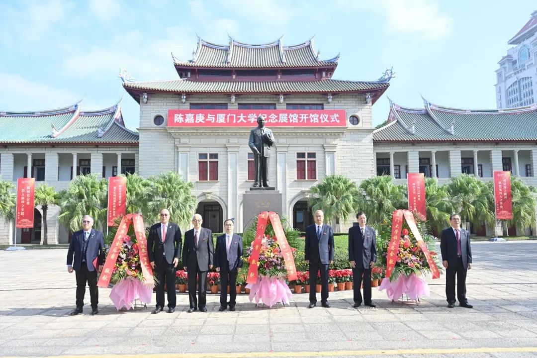 张宗益,校党委常务副书记林东伟,陈铭,陈嘉庚先生曾外孙曾文正,王豪杰,吴宣恭,校党委原常务副书记、校友总会副理事长李建发向陈嘉庚先生铜像敬献花篮。全体人员向陈嘉庚铜像三鞠躬以示崇敬与缅怀。