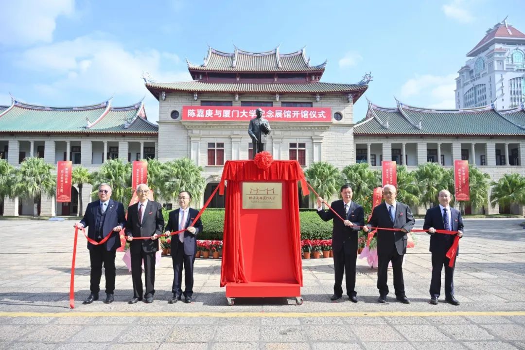 10月18日上午,厦门大学举行“陈嘉庚与厦门大学”纪念展馆开馆仪式。校长张宗益,校党委原书记、校友总会荣誉理事王豪杰,校党委原书记吴宣恭,原常务副校长、校友总会荣誉理事潘世墨,陈嘉庚先生曾孙陈铭,闽都陈嘉庚公益基金会秘书长朱孟楠共同为“陈嘉庚与厦门大学”纪念展馆揭牌。仪式由校党委常委、副校长邓朝晖主持。