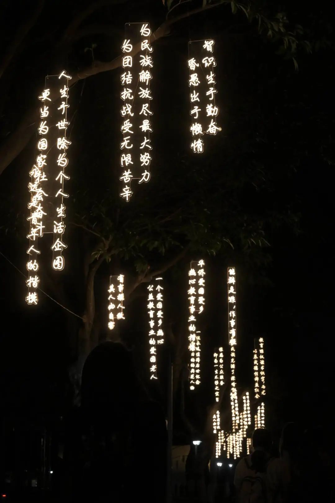 看着树上亮起的一句句话语汇聚成点点星光,也想起我来厦大之前通知书给我的无与伦比的感受。这是穿越百年流淌的精神力量,独属于厦大的浪漫。