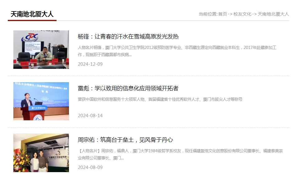 暑假期间组织开展2024年“天南地北厦大人”暑期社会实践活动挖掘优秀校友典型