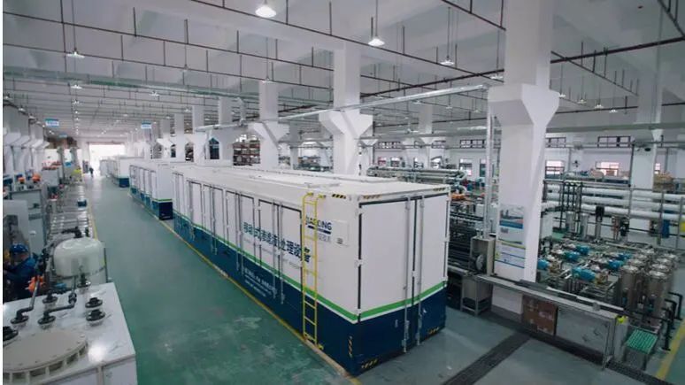 一排排蓝白相间的集装箱整齐摆放在地上,里面布满了各种膜组件、水泵、阀门、仪表及控制系统筹装备,工人们正在逐一进行设备安装和调试……嘉戎技术的车间里,公司各项生产有条不紊,一片片碟状和管状薄膜从这里走向全国。