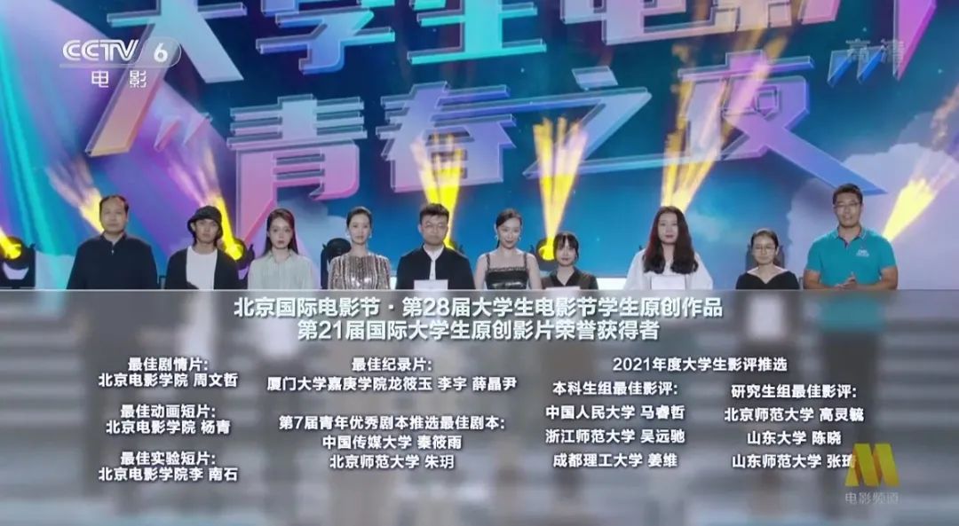 9月30日晚,北京国际电影节·第28届大学生电影节“青春之夜”在中央电视台电影频道及网络平台同步播出。在这方大舞台上,“嘉”人青春亮相——我校嘉庚学院人文与传播学院校友李宇代表《回家》创作团队登台领奖。