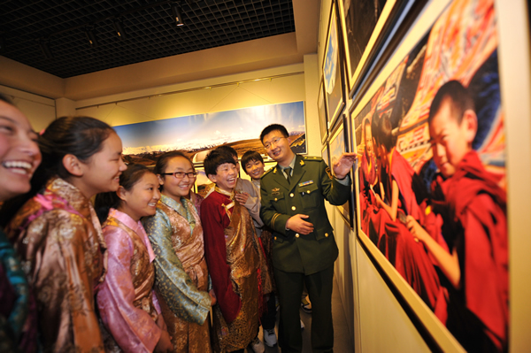 影展上田继国和辽阳一中藏族班的孩子们在一起