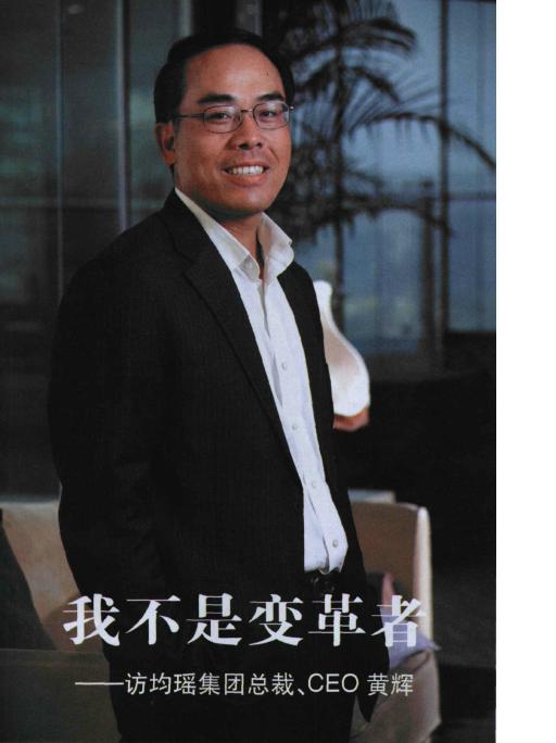 2006年6月下旬,黄辉在均瑶集团履职CEO职位8个月有余。在接受《人力资本》记者采访时,作为一名曾经以攻城掠寨、开创新业务著称的外企强势经理人,身在均瑶的黄辉意外地低调和谦逊,在他履新均瑶CEO职位的8个月中,遭遇了均瑶乳业的人事震荡、旁支业务的成功剥离或合并后,黄辉仍然坚持自己不是一名变革者,仅仅是一名合作伙伴。