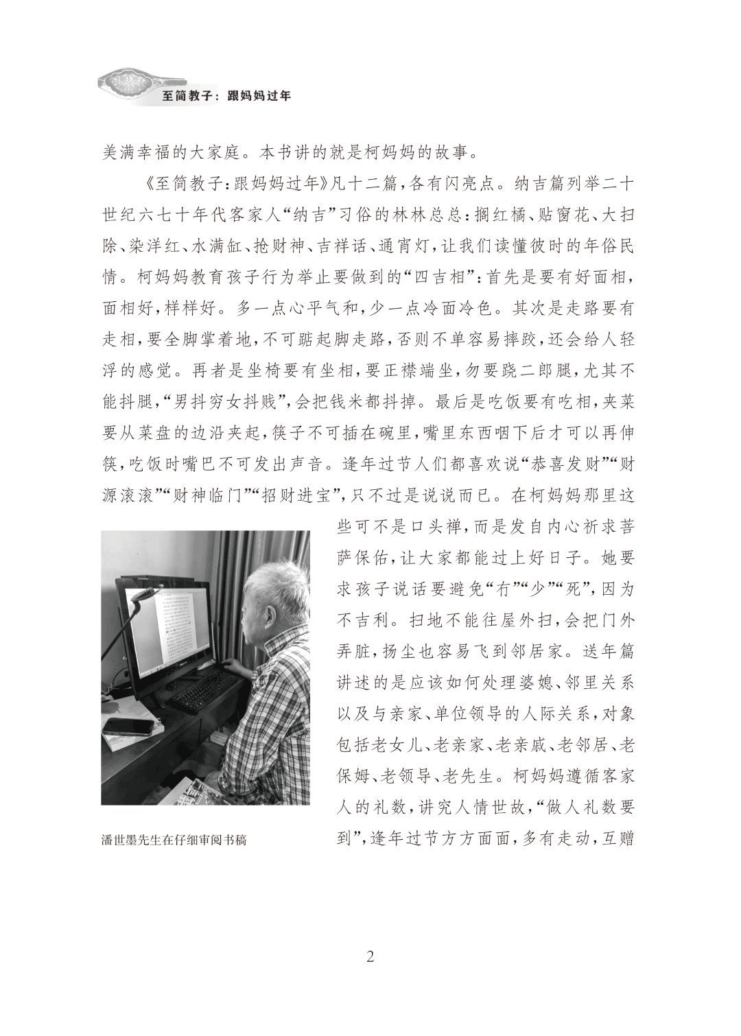本书是一部非虚构回忆作品,由厦门大学原常务副校长潘世墨作序推荐。本书透过与妈妈一块过年这个截面,全景展现了一个平凡中见不平凡的母亲身影。作品视角独特,发乎内心,情感真挚,语言平实,将纳吉、年货、送年、出行、新衣衫、年夜饭、小春晚、接送站等妈妈张罗的年事一一娓娓道来,饱含着作者对母亲、对父亲的无限缅怀感念之情,充满着妈妈对丈夫、子女的眷恋之情,洋溢着妈妈对亲家、老师、保姆、宗亲等的感恩之情,流淌着妈妈和作者浓浓的亲情、故乡情、师生情、厦大情、同窗情、战友情、邻里情......