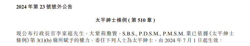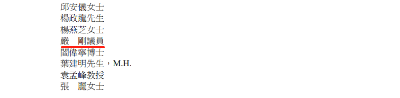 此次委任太平绅士名单刊登于宪报,共59人,其中,17人根据该条例第3(1)(a)条获委任(一般称为官守太平绅士),42人根据《太平绅士条例》(第510章)第3(1)(b)条获委任(一般称为非官守太平绅士,严刚校友在此列)。