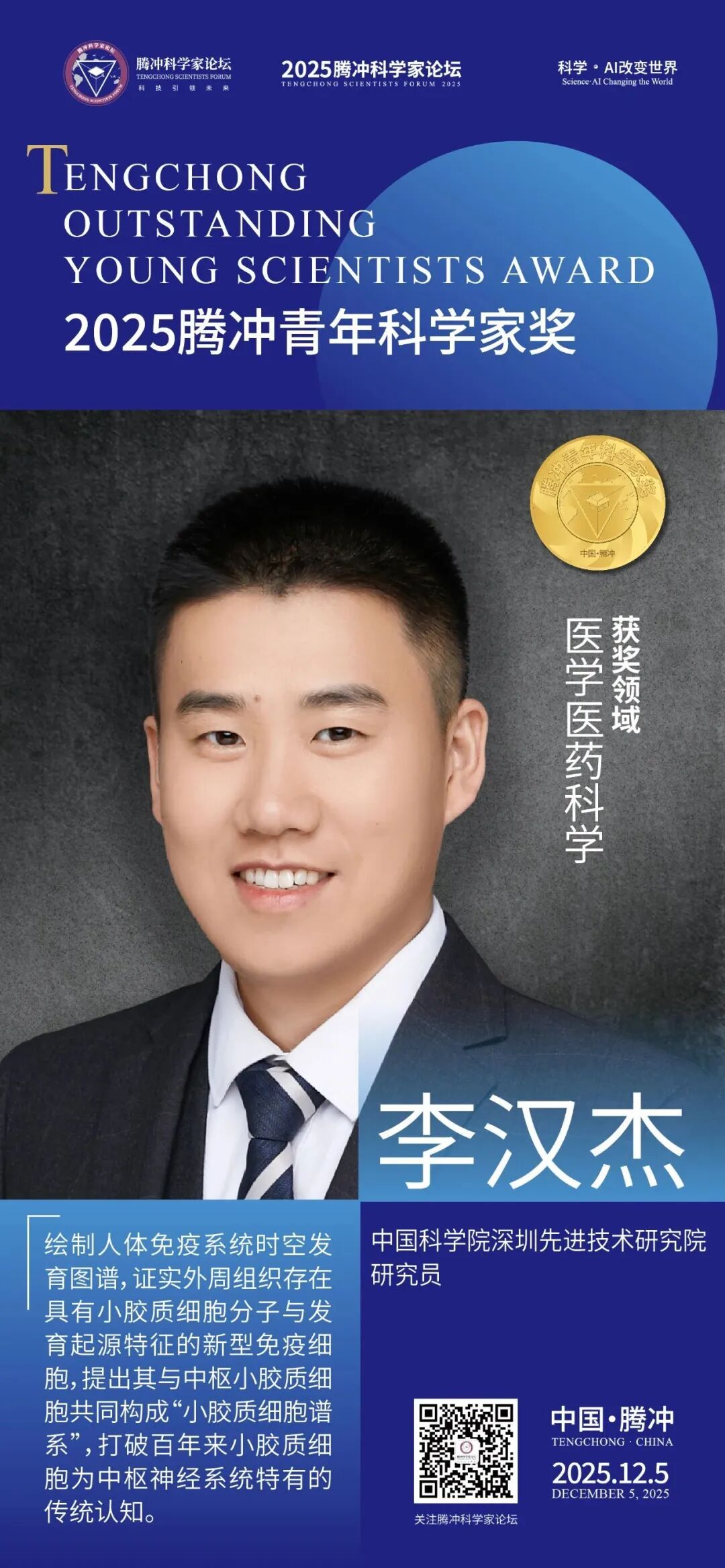 李汉杰于2006年入学厦门大学生命科学学院,2014年毕业获博士学位,主要从事免疫细胞的发育分化与功能研究,2020年回国加入中国科学院深圳先进技术研究院后,带领团队瞄准人体免疫系统发育这一前沿高地,展开系统性、前瞻性的战略布局与研究攻关。组委会在获奖理由中指出,李汉杰团队绘制人体免疫系统时空发育图谱,证实外周组织存在具有小胶质细胞分子与发育起源特征的新型免疫细胞,提出其与中枢小胶质细胞共同构成“小胶质细胞谱系”,打破百年来小胶质细胞为中枢神经系统特有的传统认知。