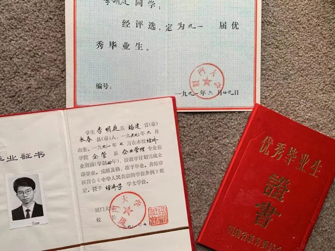 学校老师领导对他的关心爱护和帮助也深深地激励着他,影响着他,这也成为他前进的动力。整个大学期间,在老师和同学的共同帮助下,虽条件艰苦,但李明庭始终善于思考,不但牢牢掌握了专业的管理知识,还拥有了出色的实践能力。企业管理理论性强并没有成为他的劣势,与此相反,他积累了相当丰富的实践经验。毫无疑问,这让他在一众即将迈入社会的毕业生中脱颖而出,为他之后的创业计划打下了坚实的基础。最后李明庭以优异成绩荣获校进雄奖学金,并被评为1991届“厦门大学优秀毕业生”。