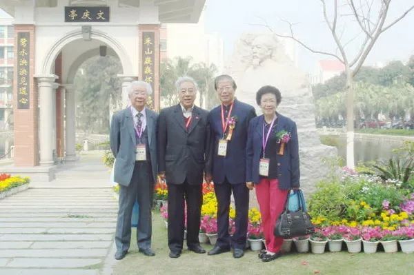 厦大九十周年校庆时郭南昌伉俪(右一、二)返校在文庆亭前合影