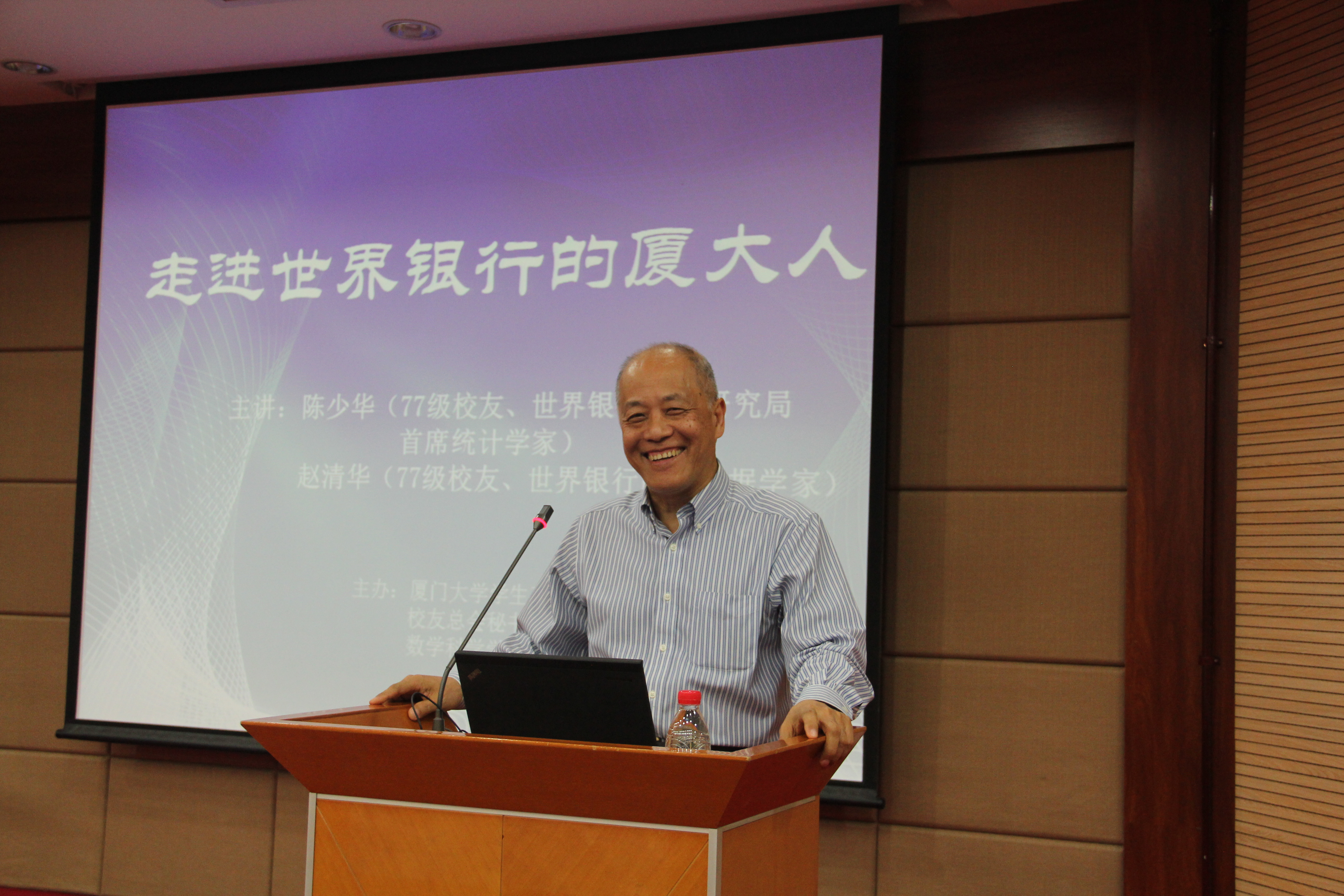 陈少华非常珍惜与热爱自己的工作,她认为世界银行的工作,给了她能关心和帮助更多人的能力与机会,给了她能为祖国争取公平与发展的机会。她讲到,要做好国际组织的工作,一方面要充分地了解本国的国情,另一方面要以国际共识为交流前提,努力在国际环境中为本国争取话语权。陈少华在世界银行中主要负责世界贫困监测工作。她讲述了自己的一次经历。世界银行曾认为中国的发展总量已十分巨大,不再是贫困的国家,不能再享受世界银行的贫困政策。但她了解中国的国情,总量很大但人均不匀,贫困人口数量仍然很大,扶贫工作仍十分艰巨,因此,她想尽办法多方调研和调动数据,分析和总结,用真实可靠的数据说话,为国家保留住了利于发展的优惠政策,在国际关系中保证了公平。因此,陈少华和赵清华鼓励学子们树立远大的目标与信心,担负起时代使命,有赤子精神,并能实现自己的人生价值。他们真诚地说道,困难与挫折都是一时的,坚持到底!