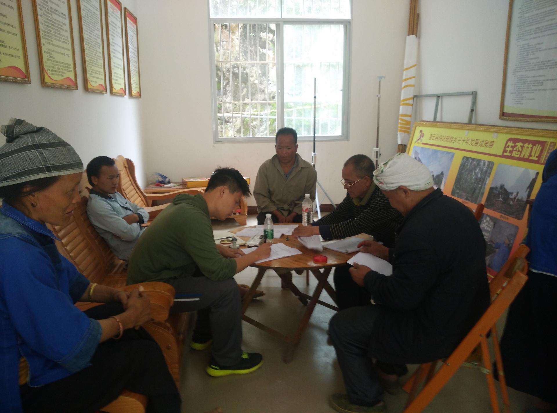孙涛在村里接访来访群众,帮群众申请危旧房改造补助