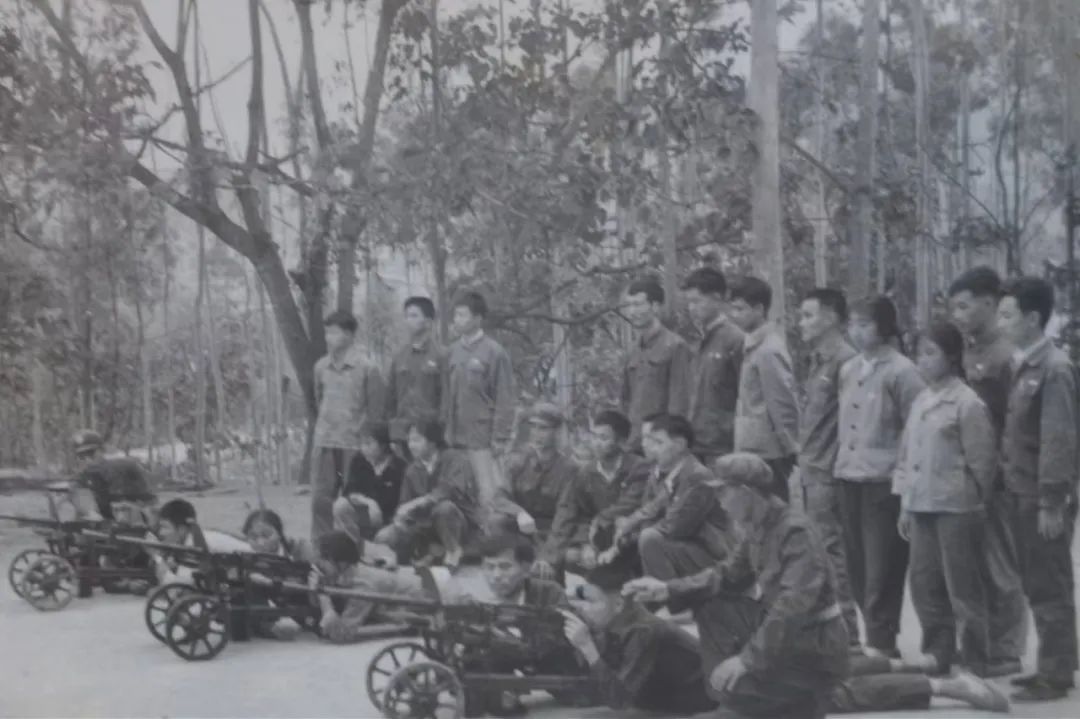 1974年,覃晓刚(照片最下方卧姿练习射击者)在原31军91师271团学军