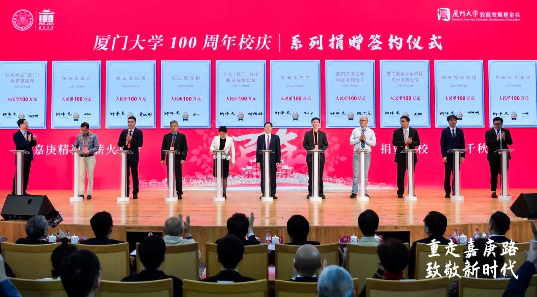 覃晓刚(左四)参加厦门大学100周年校庆系列捐赠签约仪式