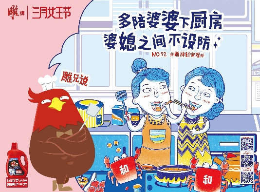 外表雷厉风行的吕曦,内心也不乏细腻的情感和对人性的洞察。“商业上的所有进步,其本质依旧是人性的驱动。”她曾提出要成为中国市场人性营销的创造者和实践者,并创造出众多经典的广告案例。英扬传奇与雕牌合作多年,雕牌最开始传达的是“妈妈,我能帮你干活了”这样传统的中国式情感,但当85后、90后群体为人父母时,他们对于家庭情感关系的认知颠覆着传统家庭观念,基于这一洞察,吕曦带领英扬传奇抓住时代的变革和年轻人意识形态的变化,提出“雕牌新家观”,让雕牌成为表达年轻人家庭观念的载体。2017年,承载着雕牌新家观智慧与灵魂的拟人化雕牌IP“雕兄”问世,人们能在微信上和幽默段子手 “雕兄”随时互动。开创性的营销手法,让雕牌在与用户的内容共创和情绪共鸣中实现传播破圈和涟漪化。