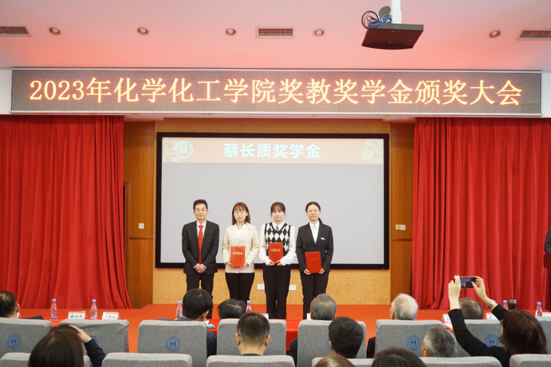 2023年,蔡长质(左一)为获得蔡长质奖学金的学生颁奖
