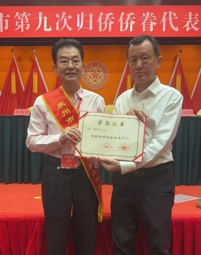 淡泊名利的精神品格,以身作则的责任担当,亮点频出的工作成绩让蔡长质受到社会各界的广泛赞誉和高度评价——2022年,蔡长质当选福建省侨联事业发展基金会副理事长,获评“泉州市十佳基层侨务工作者”;2023年,他被中国侨联及国务院侨务办公室授予“全国归侨与侨眷先进个人”荣誉称号,获归国华侨黄书杭先生赠予“全心全意为侨办实事”锦旗……