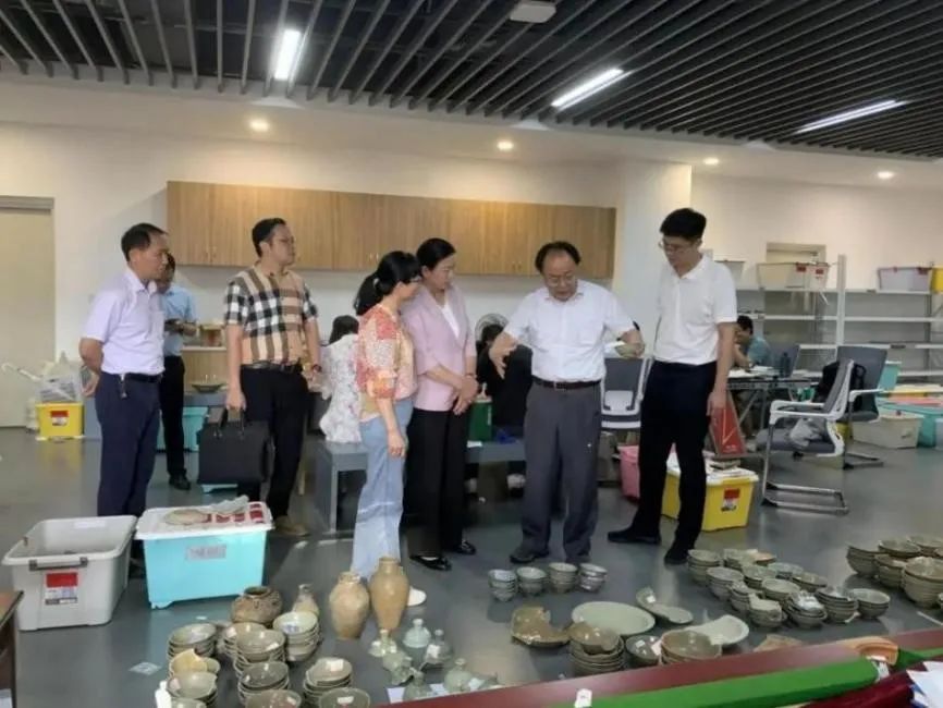 2024年,郑国珍(右二)到漳州市博物馆参与指导圣杯屿出水文物保护展示