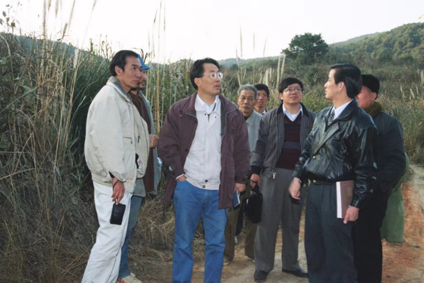 1999年12月,郑国珍(左三)考察万寿岩遗址