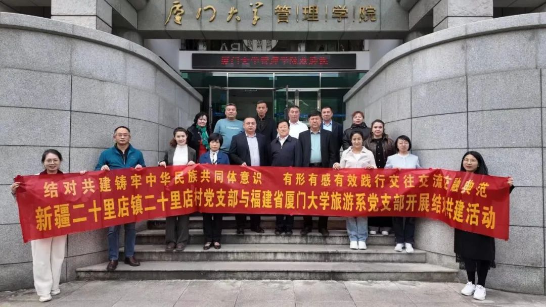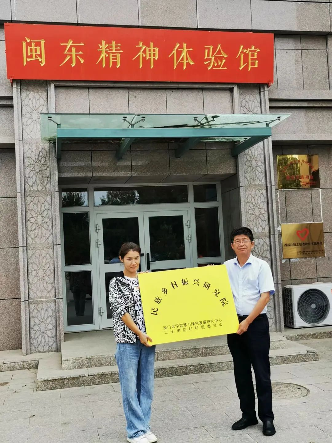 2023年8月,厦门大学经济学院与新疆大学政治与公共管理学院联合组建的“数字强疆”暑期社会实践队,在新疆开展为期8天的实践调研,聚焦数字化治理背景下少数民族地区农户增收路径。期间,厦门大学智慧与绿色发展研究中心与呼图壁县二十里店镇二十里店村委会共建“乡村振兴研究院”,旨在探索乡村振兴新路径。时任厦门大学党委副书记徐进功教授在呼图壁县二十里店村向厦门大学管理学院校友、昌吉州人大代表及二十里店镇公共文化服务中心干部谢日那义·斯马义授牌。