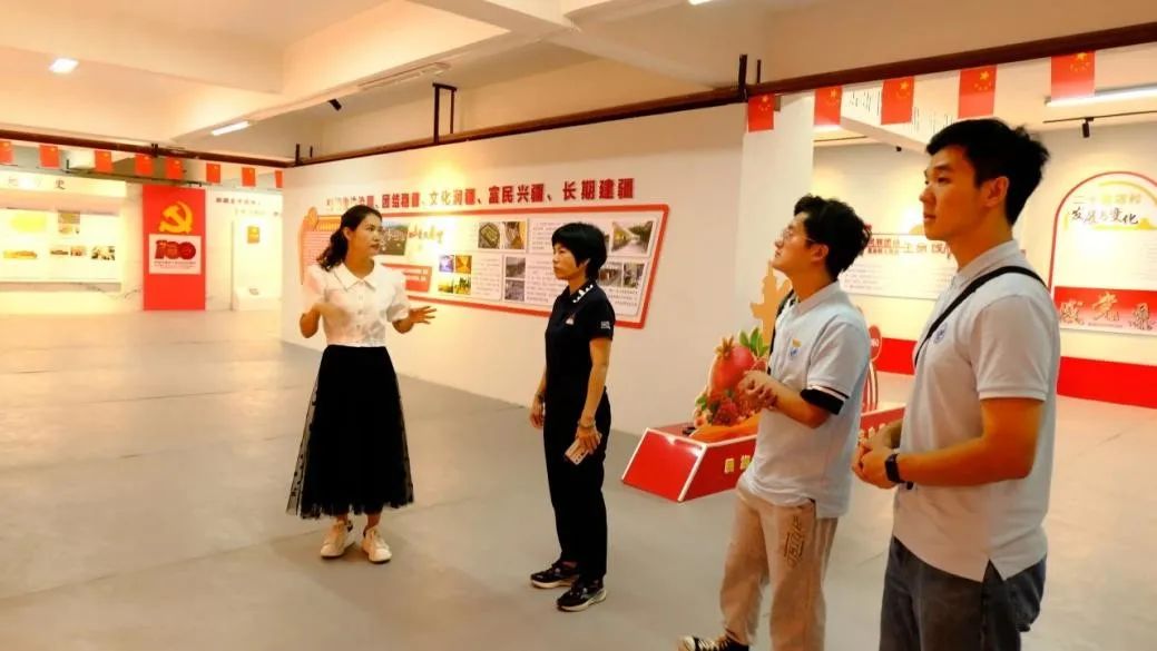 2023年8月,谢日那义带领管理学院党委副书记郑碧娇和实践队成员参观二十里店村民族团结进步教育基地