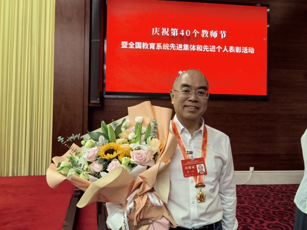 2024年,洪一江荣获“全国模范教师”,赴北京接受表彰