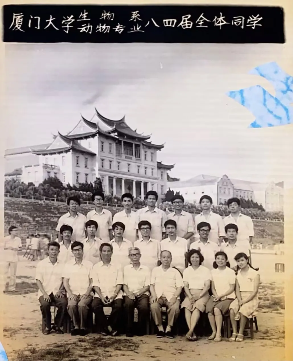 厦门大学1984届生物系动物学专业本科班合影(第二排右二为洪一江)