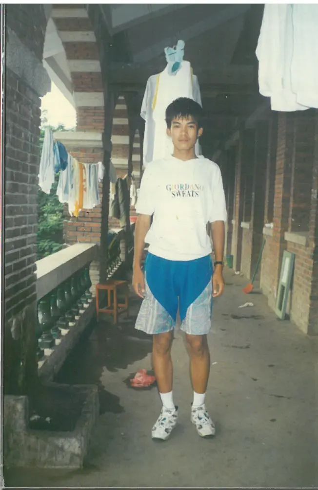 作者摄于1995年中秋前后(那天晚上我就是站在旁边的条石那里用心赏月的,估计午睡刚醒,头发被汗打成绺,一脸懵灯)