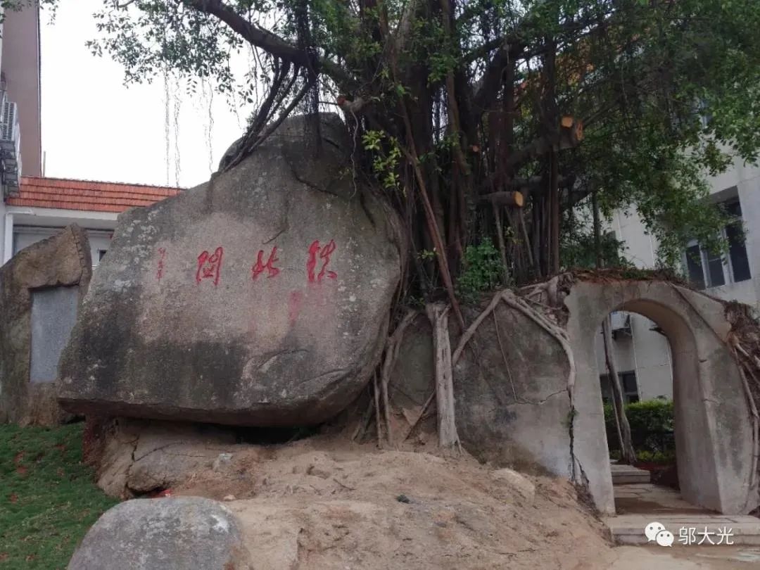 说到厦大的延平文化,最有力的证据是上个世纪50年代在演武场发现的一块石匾,上面刻有“练胆”二字,石匾高0.48米,宽1.02米。1957年经郭沫若等人考证,认为该石匾为郑成功演武亭之石构部件,如今保存在鼓浪屿郑成功纪念馆(郭沫若此行,还给厦大留下了“鲁迅纪念馆”题词。)。而一位老厦大人则告诉我,这块石匾是在同安楼后面的八角亭旁边的男厕所被发现,是小便池上的一块石头。当年郑成功挥师北伐之前,曾在此训练出一支万人铁军。清康熙十九年(1680年),清军攻入厦门,郑成功之子郑经在撤军台湾前,下令将演武亭焚毁。1961年,演武亭被公布为市级文物保护单位。陈嘉庚在此兴学办校,对于我们今天的人才培养也具有重要的价值意义,尤其是“练胆”二字,赋予大学人才培养更深刻的涵义,即:为全人类发展“练胆”、为国家复兴“练胆”、为社会发展“练胆”。“练胆”,应是大学乃至大学人皆应铁肩担道义的使命。