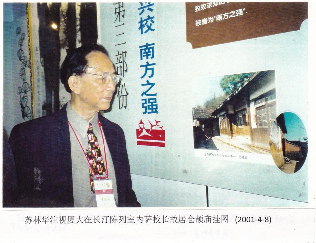 55年之後、即2001年4月7日,即母校八十周年校庆之次日,我搭母校专车返汀作怀古之旅,才知道博爱斋及图书馆所在之万寿宫早已被拆除,映雪斋回归为民宅,机场所在地竟变成一个大商场,令我惘然若失!还好见到萨本栋校长的仓颉庙故居仍在,故入内拍了照片;也到原大礼堂变成“厦大在长汀纪念室“,也拍照留影,现附于此。