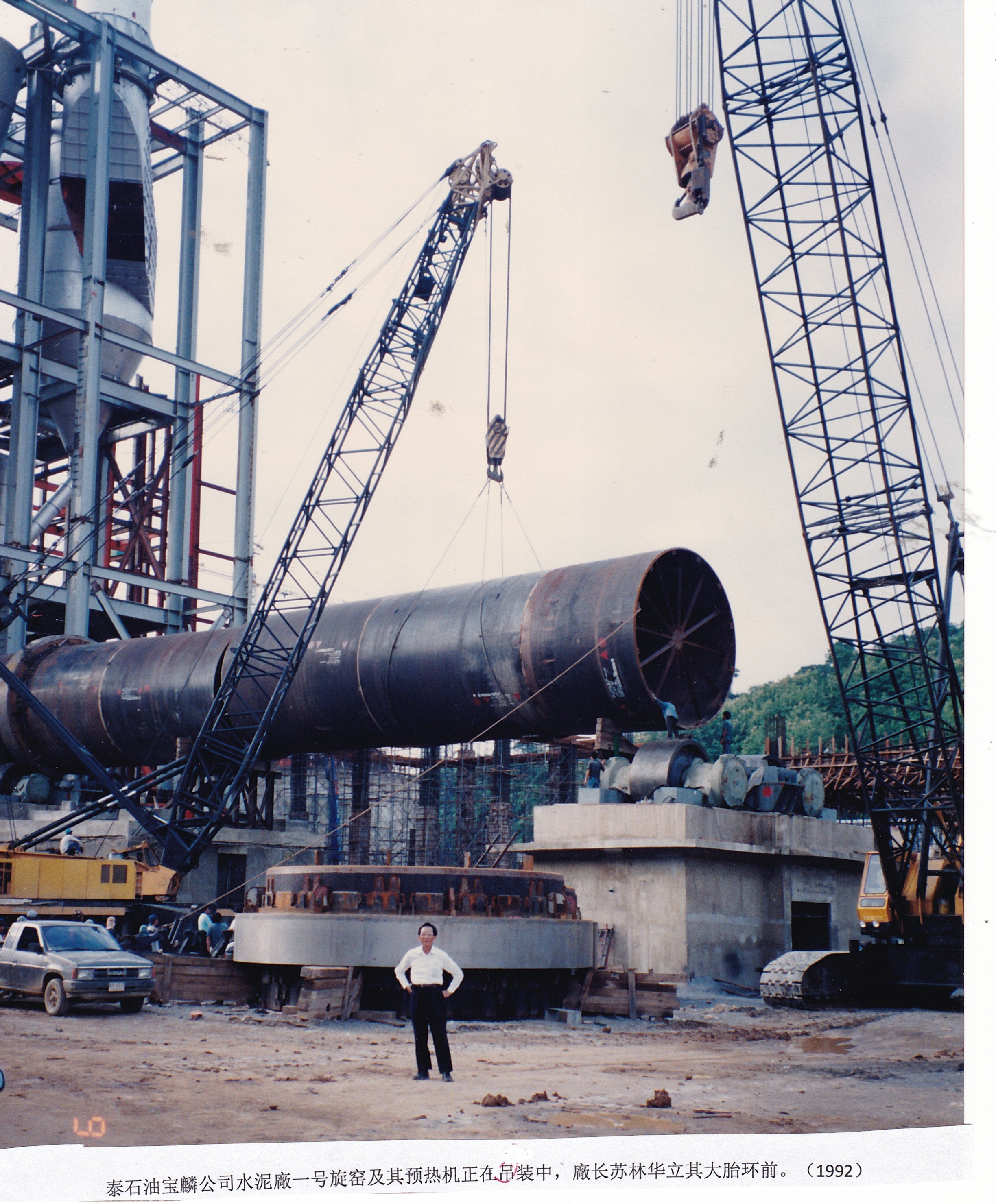 我在第二套设备兴工时,即被提升为公司之资深副总经理(Senior Vice-President),仍兼厂长之职;而总经理兼执行长(President / C.E.O.)是由公司老板廖汉渲先生亲自担任。至此、三套设备之水泥年产量已超过1,200万公吨,此产能已独步于全球。