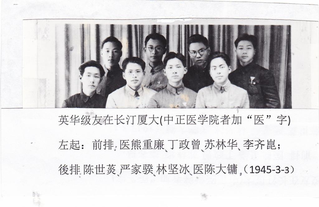 1944年8月,五位英华高中毕业生经校方保送、到其时迁到闽西长汀之国立厦门大学报到,即:严家骙(土木系),李齐昆、陈世菼与我苏林华(均机电系),丁政曾(会计系);后又加入林坚冰(数理系)。——我们六人同住在与机场相隔只一个山脊的博爱斋宿舍内,在日机频常轰炸声中,生死与共。