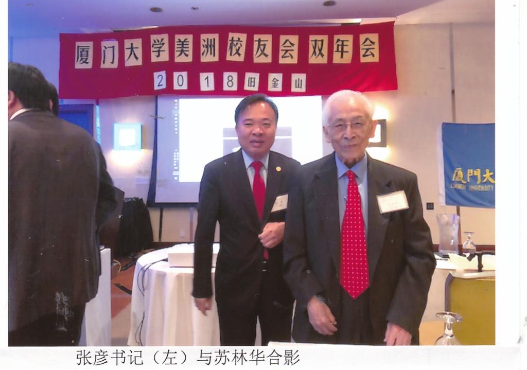 去年(2018)9月底,应美洲校友会之邀、飞到旧金山参加“厦门大学美洲校友会2018双年会”,我由外孙女张洛萱陪同,9月28日飞抵旧金山,住进“旧金山湾区希尔顿旅馆”,也就是次日会场之所在地。母校特请张彦党委书记来美主持美洲校友会理事会换届典礼。次晨(9月29日)他进会场时,我即迎之、并合影。