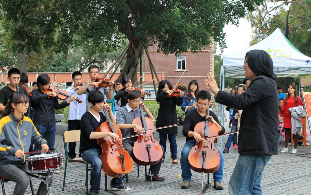 除了专业课程的学习,大学期间,至凡还指挥乐团、开音乐讲座、组织各类古典音乐活动等,在音乐领域就做出了大多数同学未曾做过的事。2011年,他加入厦门大学古典音韵协会,就展露出非凡的指挥天赋。作为大学校园的业余音乐社团,大多队员是非音乐专业出身的“门外汉”,其演奏水平更是参差不齐。在至凡的带领下,队员们相互磨合,不断提升技艺,演出了许多经典曲目:肖斯塔科维奇第二圆舞曲,弗雷帕凡舞曲,一步之遥,巴赫双小协……