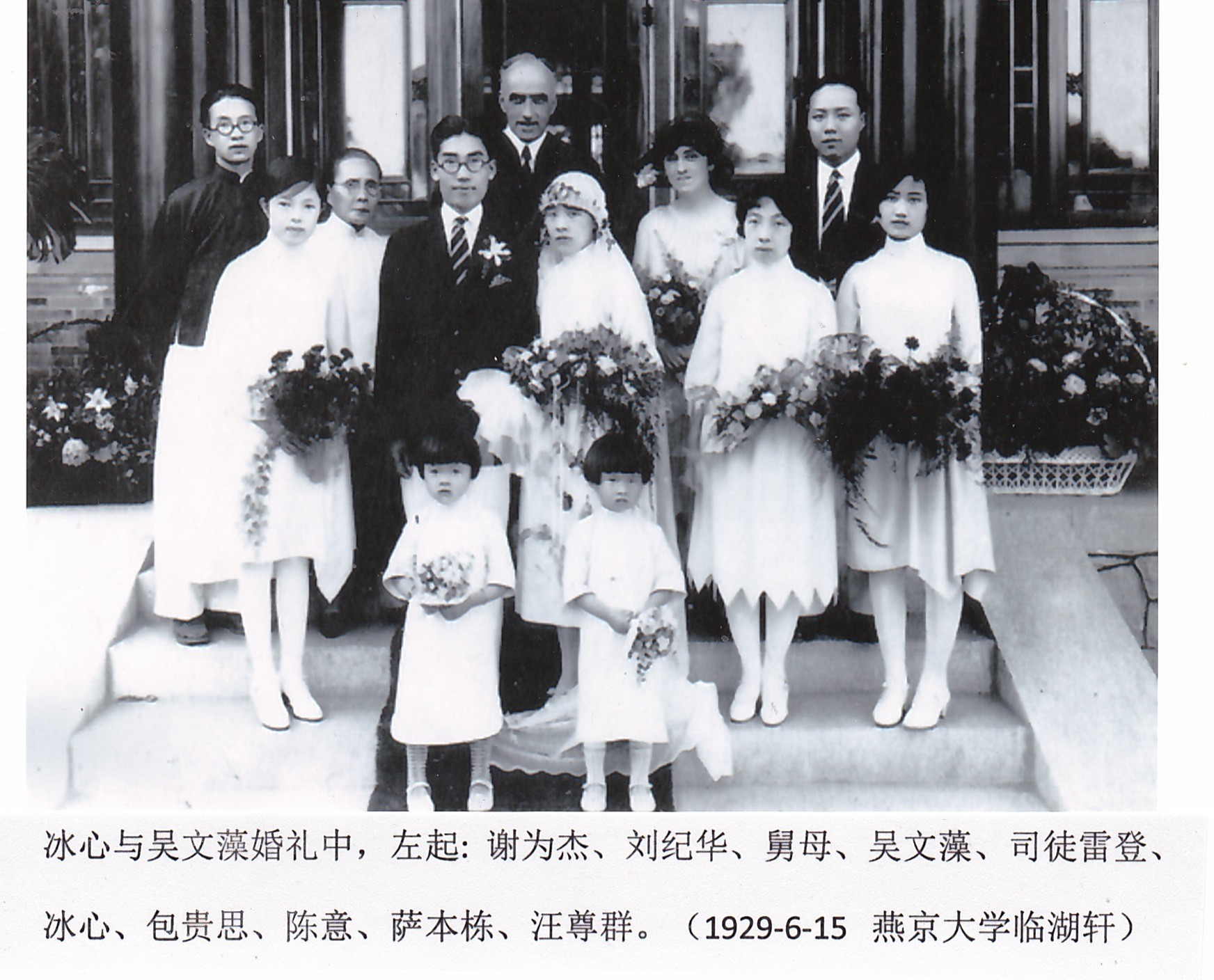 1948年我自厦大毕业後分发到台湾水泥公司、开始了其後59年之水泥业生涯,服务范围遍及各国。1990年1月起有十七年半时间在泰国、为侨领負全責建成一座世界级大水泥廠并予监管。某周日我自廠区到曼谷,居然在一家书店购到鹭江出版社发行之书《福州老照片》,赫然见到1929年6月15日时、冰心和吴文藻博士在燕京大学司徒雷登校长福证、清华大学萨本栋教授为伴郎、陈意等三伴娘等在场下举行婚礼的大合照:前排为二花童,後排左起为: 冰心二弟谢为杰、伴娘刘纪华、舅母、新郎吴文藻、司徒雷登、新娘冰心、美籍包贵思老师、伴娘陈意、伴郎萨本栋及伴娘汪尊群。-----这些贵宾中,当以萨本栋教授之为伴郎颇令人感到惊奇。