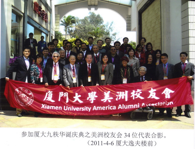 2011年4月6日厦大建校九十周年庆典,美洲校友会在傅志东董事长和刘伟敏理事长推动下,有40位校友与眷属参加,包含了“七老八十”的阵容(按,有七位超过八十岁的老校友参加,即:庄昭顺、朱一雄、陈承煜、林幼堃、陈振苍、张德光及我苏林华),值得纪念(现附照片于此)。惜朱一雄学长已于2013年3月间在新泽西州过世了。