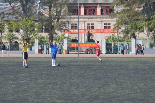 我记得一九六0年冬季,许多北方球队像候鸟一样南飞,喜欢来闽冬训,那年吉林乙级足球队跟厦大队进行了一场友谊比赛,我以主力队员出场,踢右内前锋,厦大队以小快灵表现出南派打法,吉林队个子高大,以长传冲吊为主,双方拼劲十足、九十分钟尘战,虽然我队以零比二告负,但厦大人的拼搏精神,跟东北大汉抗衡,这次良好表现搏得观众一致赞扬。我常踢球运动身心好,每天看十多个小时的书不觉疲痨,也不会近视。我厦大足球队员都没有近视眼,我四年在厦大没发生大病、发烧小病都少,体力也充沛,一九五九年我们班在袁镇岳系主任,叶品樵班主任老师的带领下到海沧劳动锻炼,我每天要担三四十担水淋菜,有一次聚餐十多位老师和同学,肚都很饥饿,每人四两米,四斤包菜焖饭,全部吃光,那时是生活最困难的时候。六0年政经专业学生到前线公社 何昔村锻炼,白天要挑肥淋菜,一担大尿桶装满粪水就有一百八十斤,我每天可挑十多担到二百米外的菜地施肥。晚上还要站六个小时岗哨,每人发二个馒头,肚子饿了,多好吃呀,在厦门前线我们晚上在濠沟里手握钢枪在站哨,每哨相距50米,哨兵时刻不忘“抓水鬼”。我们站在海边濠沟里,前面还设有铁丝网,我们看着大海有无金门方向“水鬼”特务爬上来。我们都紧握手中枪,随时准备抓“水鬼”立个大功。白天面向金门前面二个小岛还看过国民党兵开着汽车在山坡上爬行,驾驶员我都看清楚了。昔日炮声隆隆,战云密佈,同胞敌视。而今,两岸共享和平友好,同胞视如兄弟,常来多往,多好呀!