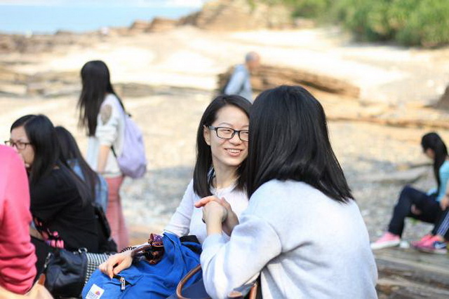 蓝天白云的晴空映衬着葱郁的树林,灿烂的阳光照耀在黄棕色的岩石上,清澈的海水拍打着海岸,大家彷佛瞬间忘却了工作、学习上的压力,情不自禁地放慢了脚步,全情投入到原生态的美景之中。