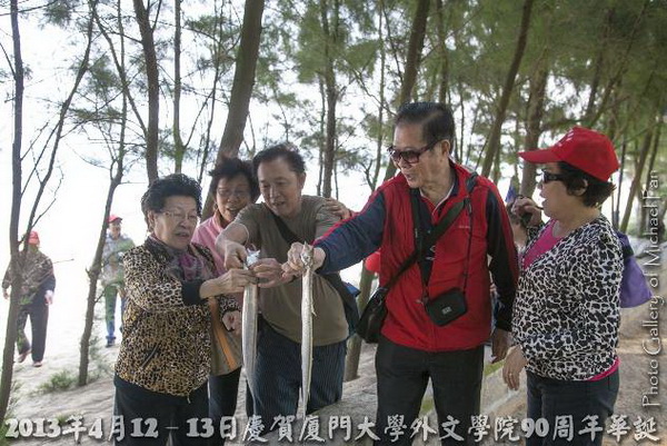 从外文学院旅港院友录制的DVD播放的屏幕中,我们看到,在外文学院90华诞庆典晚会上,旅港院友们的合唱表演非常专业,歌曲旋律十分优美。根据母校外文学院的相关报导:将表演推向高潮的无疑是由香港院友团演唱的歌曲《One Day When We Were Young》。院友们用这首上世纪三十年代的经典情歌将自己对母院的眷念娓娓道来,虽青春不在,但依旧动听的歌声里满满都是自己对外文学院的殷殷深情,引发了全体在场师生的情感共鸣。这是最美的赞赏和最好的评价。看到学长们在大嶝岛和东山岛玩乐的情景,尤其是邱礼德学长和蔡信铃老师拎着带鱼的表情,可以说比现在年轻了许多,甚至可以想象他们俩如果提着的是灯笼,那童真的表情,一定非常可爱。看着、看着,不禁勾起对大学时代在厦大海滨玩乐的美好回忆,沙滩上烙下多少青春足迹、浪花里珍藏着多少甜言蜜语,海风中吹拂着多少喜怒哀乐,多少事、一幕幕像电影一样呈现眼前,生活的浪花,佛击着岩石更加美。
